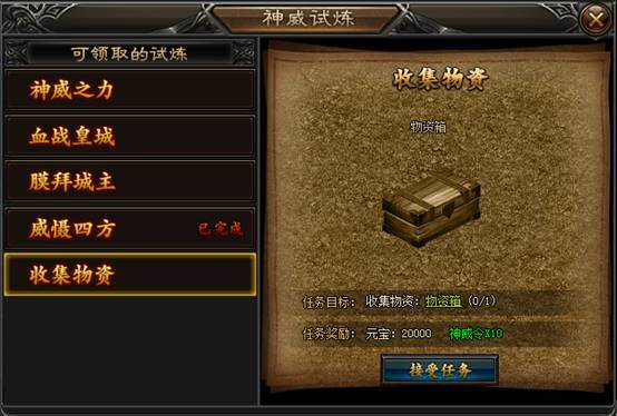玩家每天可以完成5个神威试炼,不同的试炼难度和奖励也都有区别。