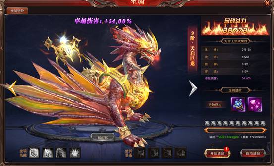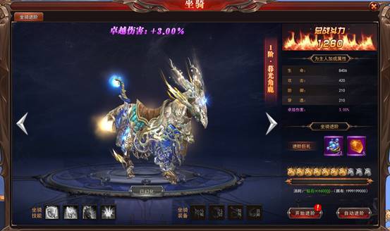 在坐骑进阶面板中,会有“进阶”和“自动进阶”2种进阶方式。