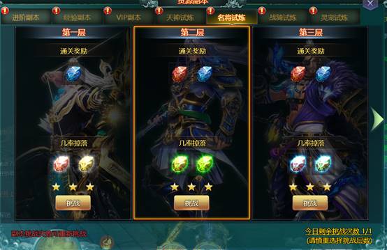 源副本玩法主要包括;进阶副本、经验副本、VIP副本,天神试炼、名将试炼、战骑试炼、灵宠试炼。是提升人物经验和伙伴技能必要参加的玩法之一。