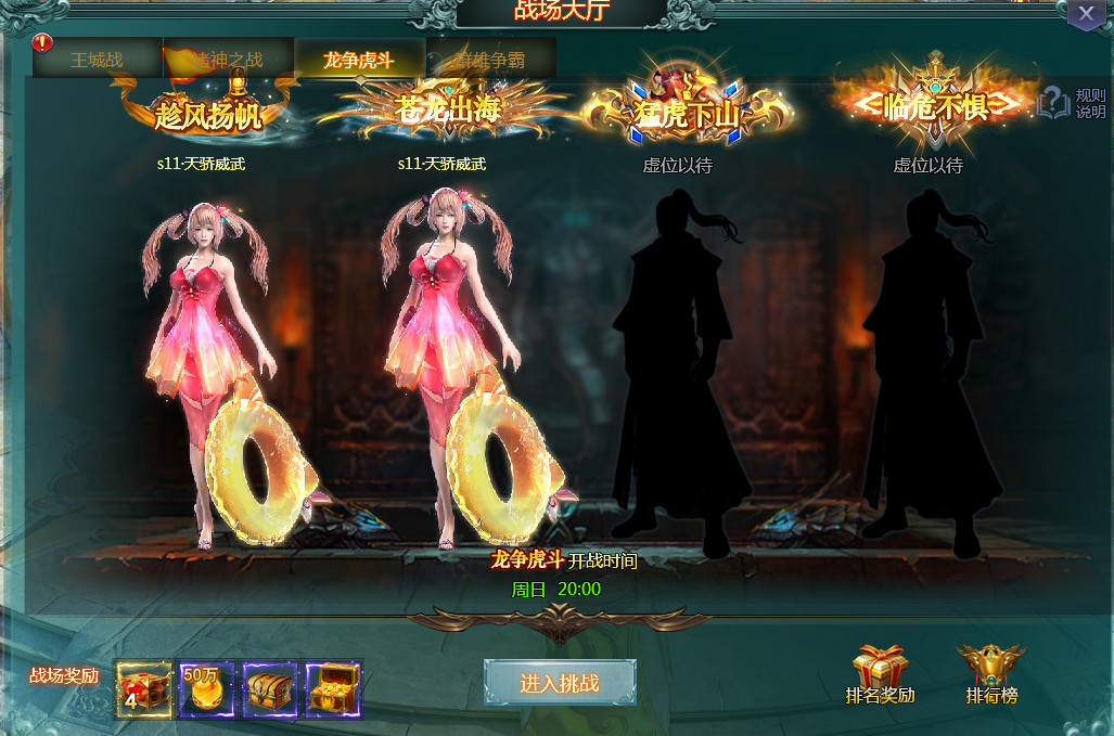 2. 活动开始时,按照战力划分,战力高的玩家划分为龙队,其他玩家为虎队。