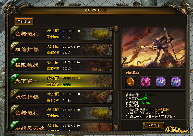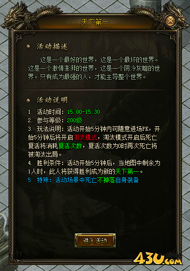 非常残酷的淘汰模式,只有最强的玩家才能生存下来,成为天下第一。